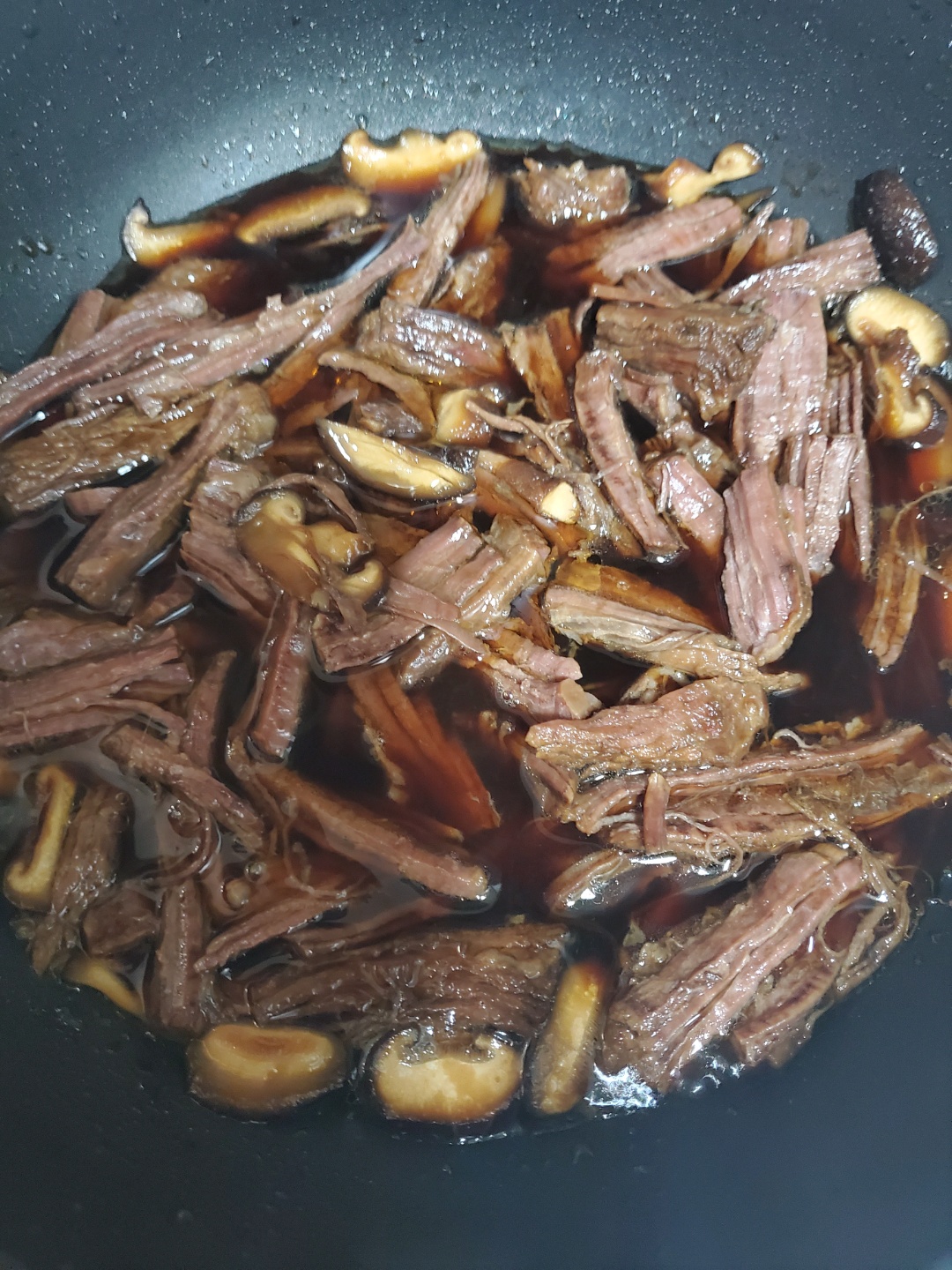 고기를 꺼내셔서 먹기 좋게 찢어주신 후, 다시 참기름 2스푼 정도 넣고 마지막으로 졸여주세요.