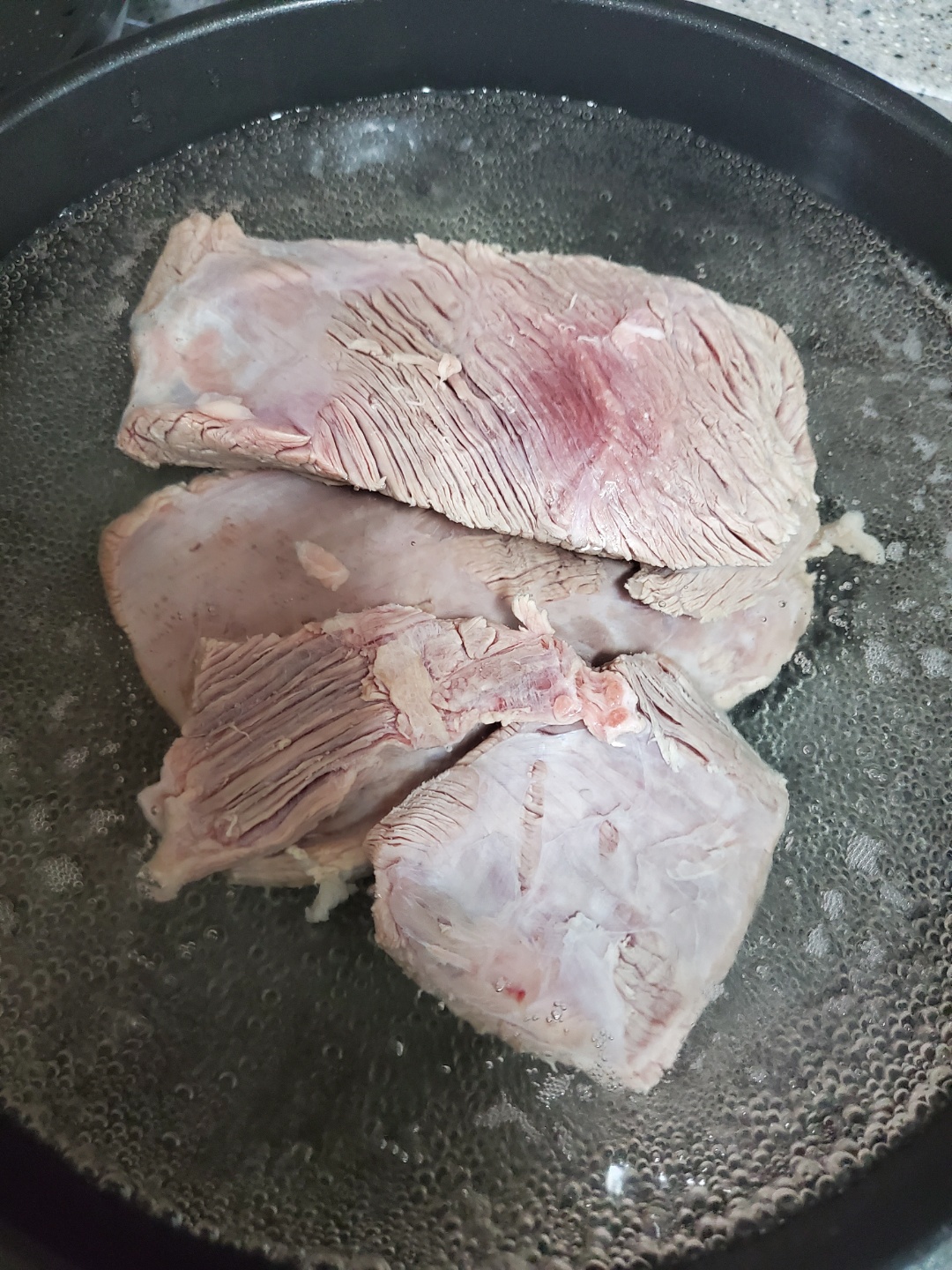 꼭 빼먹지 마시고 핏물 제거를 해주세요. 적당하게 조각을 내어 핏물을 빼 주시면 좀 더 빨리 빠집니다.